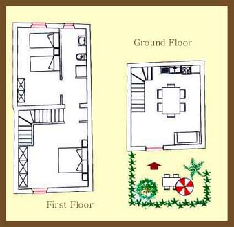 | Fully furnished and equipped house. Approximately 80 m2. Beds 4 + 2. Lounge with dining room, table and fireplace. Cooking area with equipped kitchen. Upstair double bedroom. Room with two single beds. Bathroom with shower box, bidet, wc and wash basin. Outdoor area featuring a table, umbrella and garden chairs. Bed, bathroom and kitchen linen-sets changed every week.
